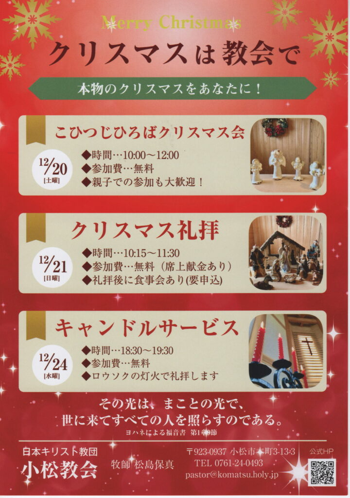 クリスマスは、わたしたちの救い主の誕生をお祝いする日。キリスト教会で本物のクリスマスを味わいませんか?皆様のお越しをお待ちしています。